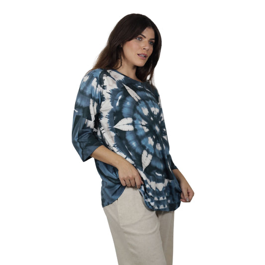 Blusa Decote "V" manga 3/4 BIXUGRILLO estampada tie dye mandala