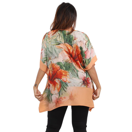 Blusa Kaftan BIXUGRILLO estampada Hibisco Orange