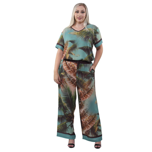 Blusa decote "V" manga curta Folhas de coqueiro