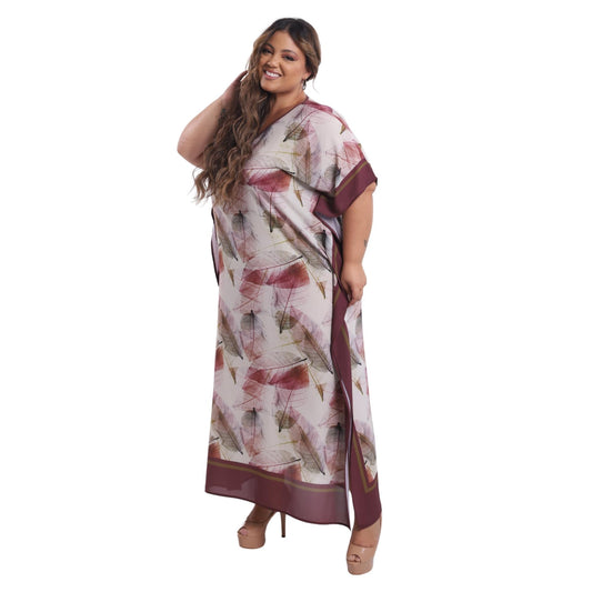 Kaftan Vestido Longo BIXUGRILLO estampada folhas outono