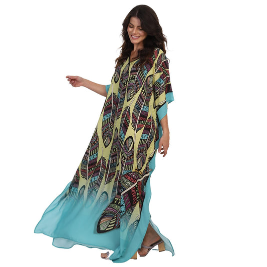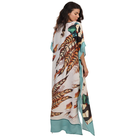 Kaftan Vestido Longo BIXUGRILLO estampada Penas Hippie