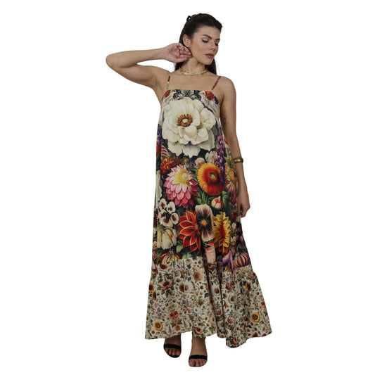 Vestido Evasê Midi Bixugrillo estampado Garden