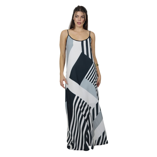 Vestido Longo de Alça Bixugrillo estampado Listras