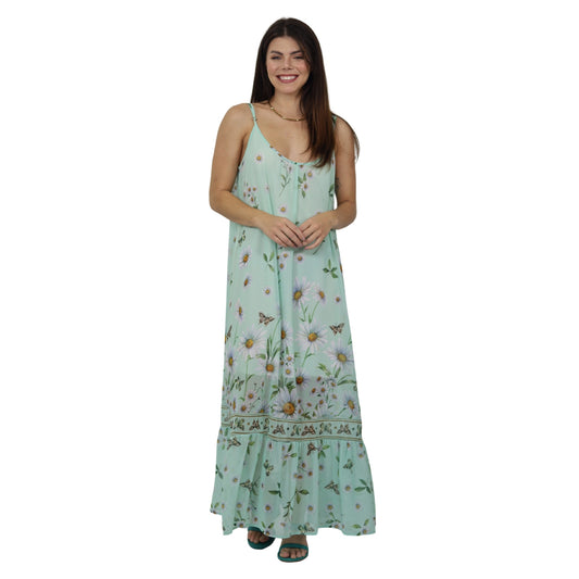 Vestido Midi de Alça Bixugrillo estampado Margaridas Verde