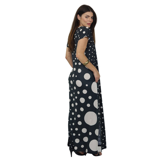 Vestidos longo malha fria Bixugrillo estampado Poá P&B