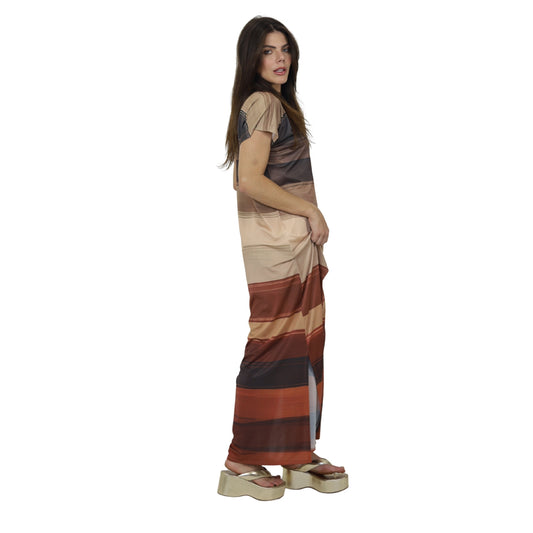Vestidos longo malha fria Bixugrillo estampado Listras Terrosas