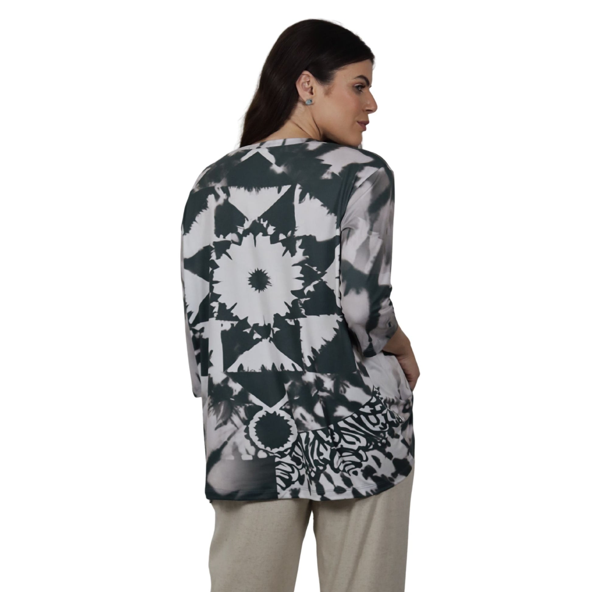 Blusa Decote "V" manga 3/4 BIXUGRILLO estampada