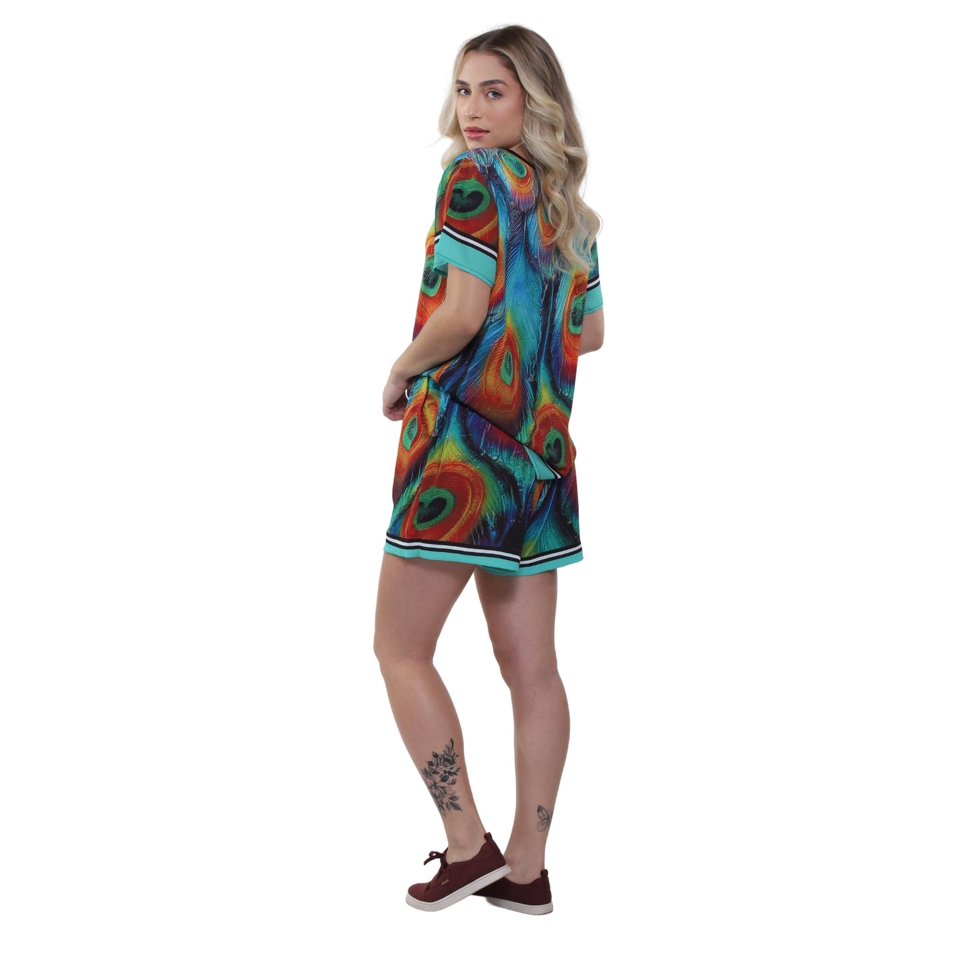 Blusa decote "V" manga curta Penas de Pavão