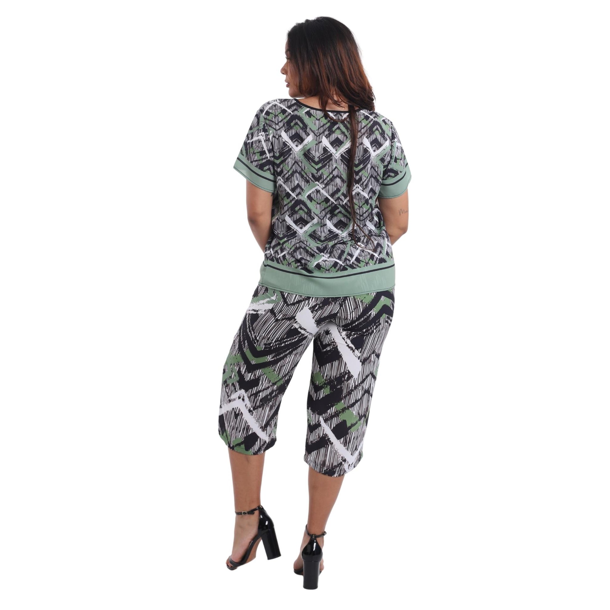 Blusa decote "V" manga curta Xadrez verde