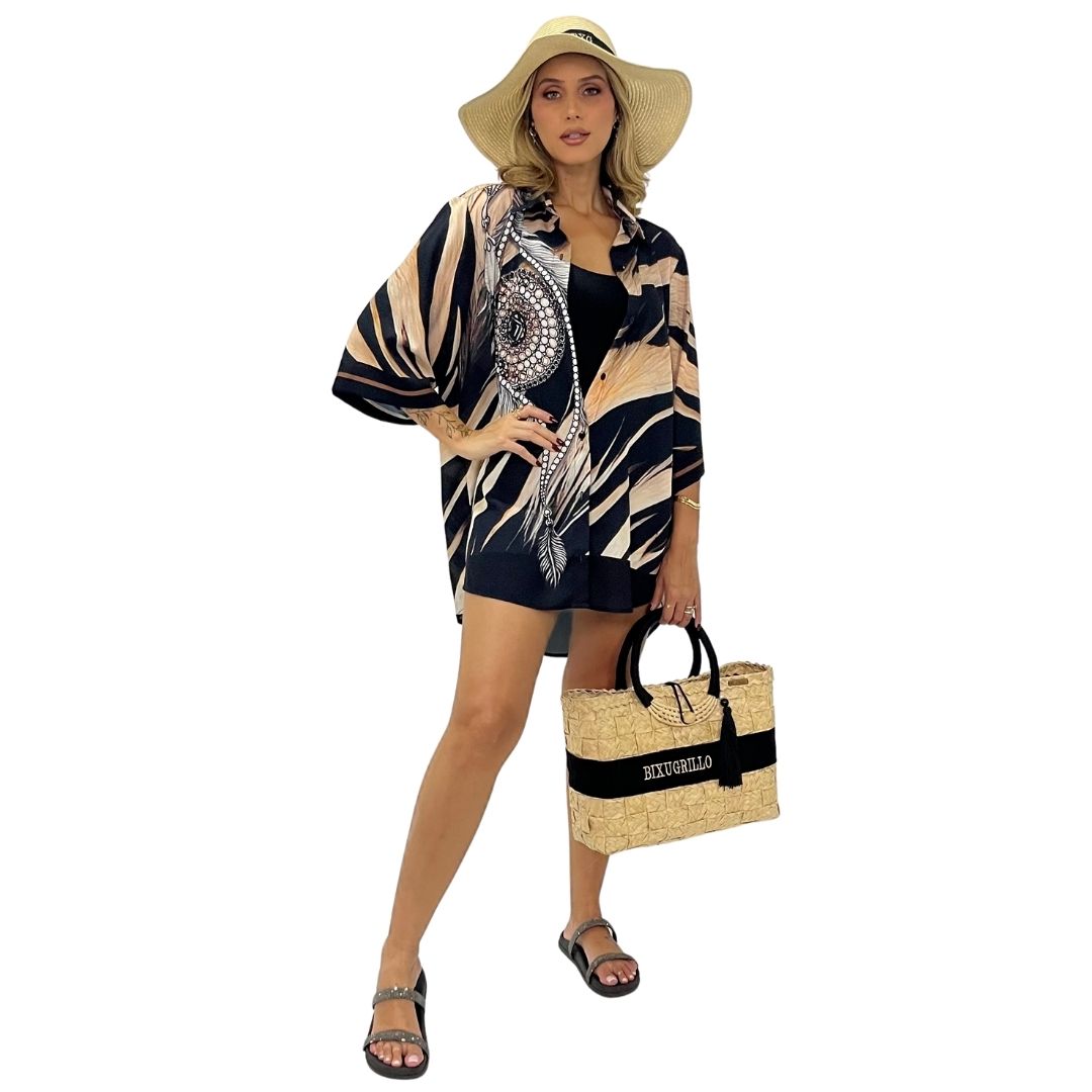 - Estilo amplo e confortável, ideal para usar como saída de praia ou compor um look descontraído.