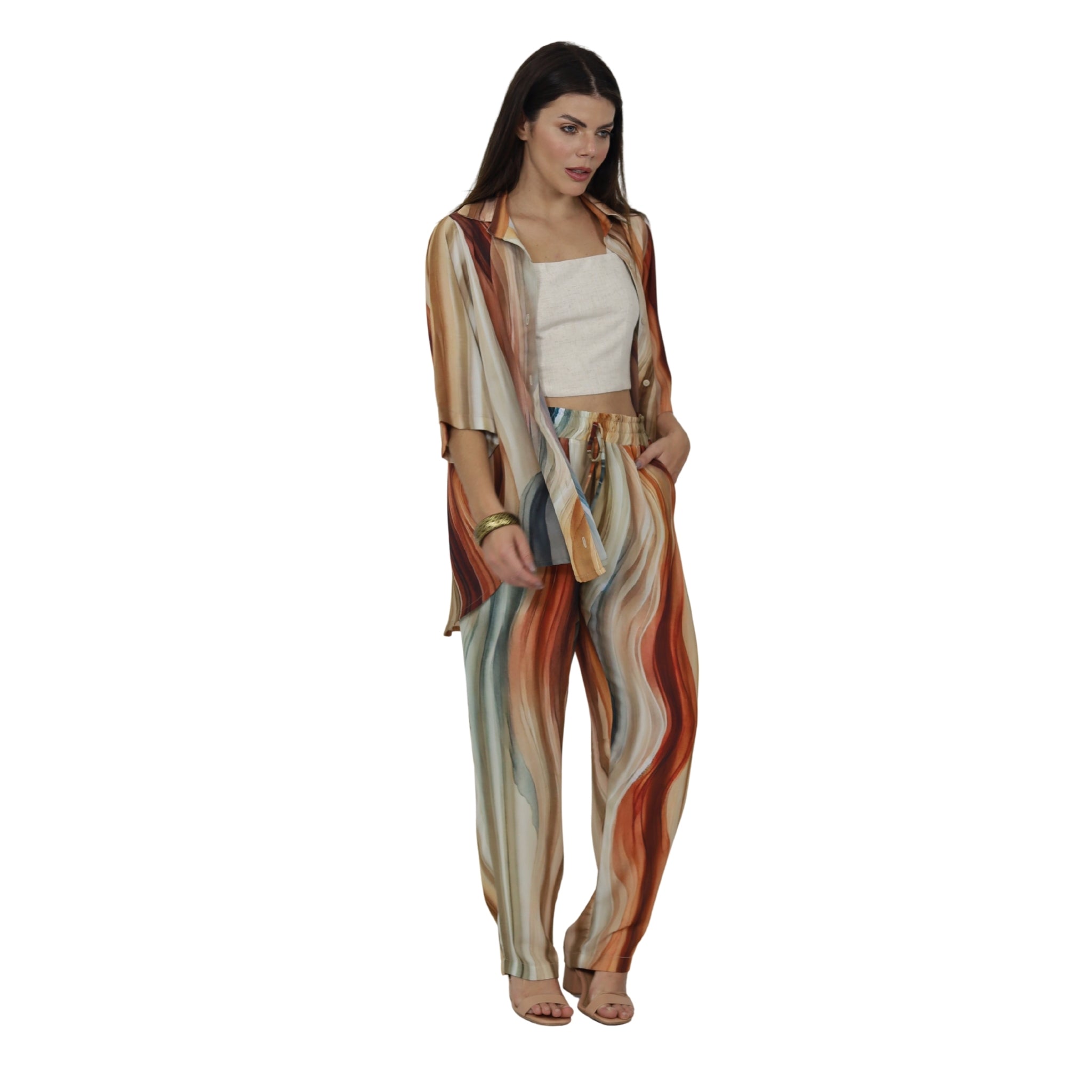 Tecidos respiráveis, leves e com transparência sutil — perfeitos para o clima tropical e para quem ama sentir a liberdade nos movimentos.