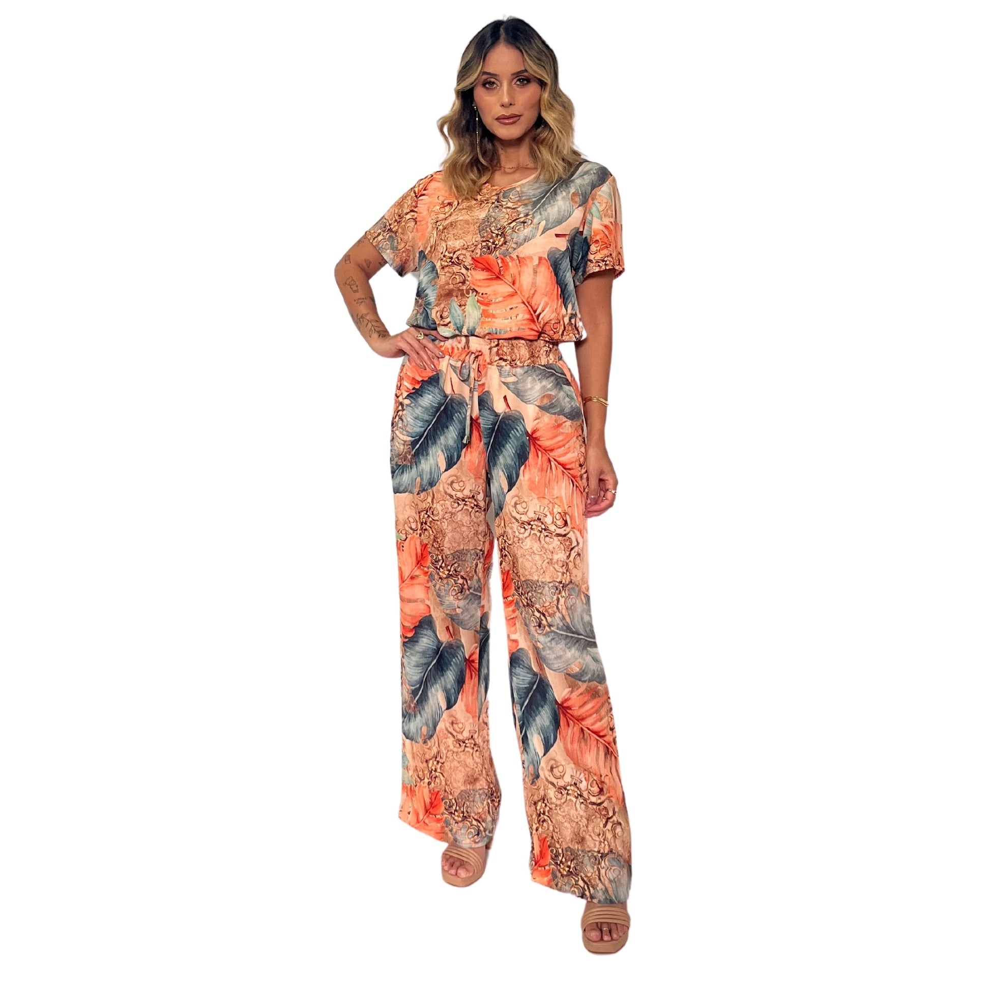 Conjunto Blusa decote "V" e calça pantalona Antunes