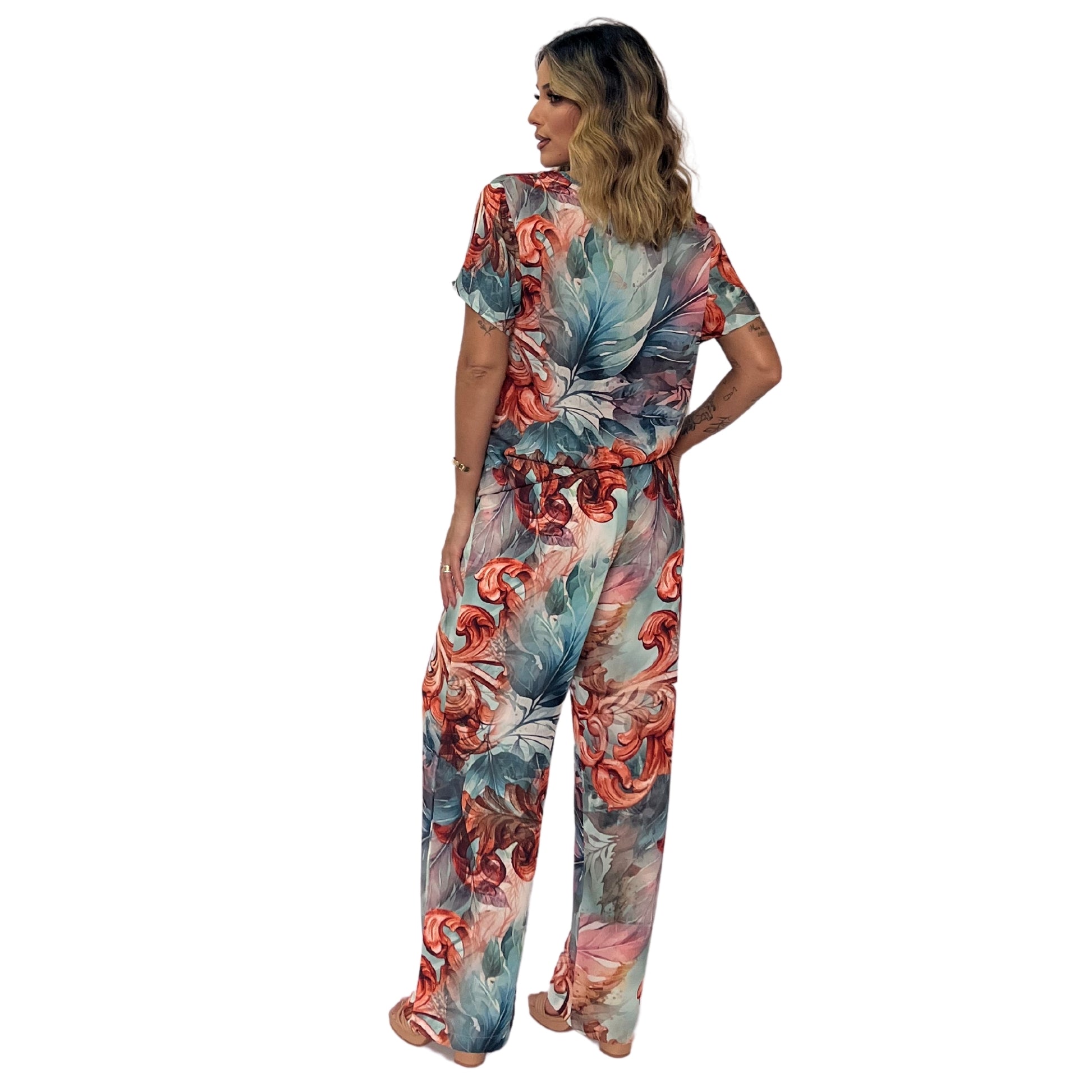 Conjunto Blusa decote "V" e calça pantalona Castelhanos