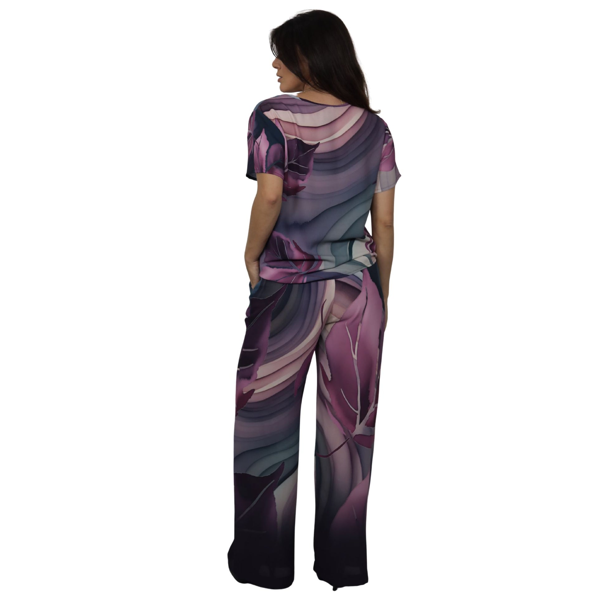 Conjunto Blusa e Pantalona BIXUGRILLO estampada Folhas Vinho