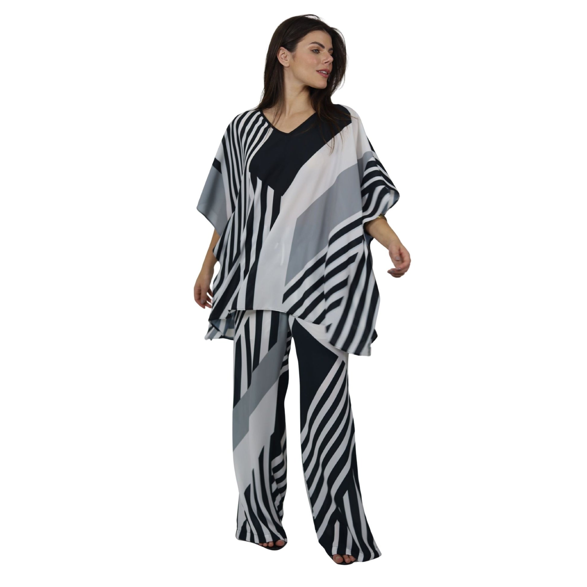 Conjunto Blusa kaftan e Pantalona BIXUGRILLO estampada Listras Azul