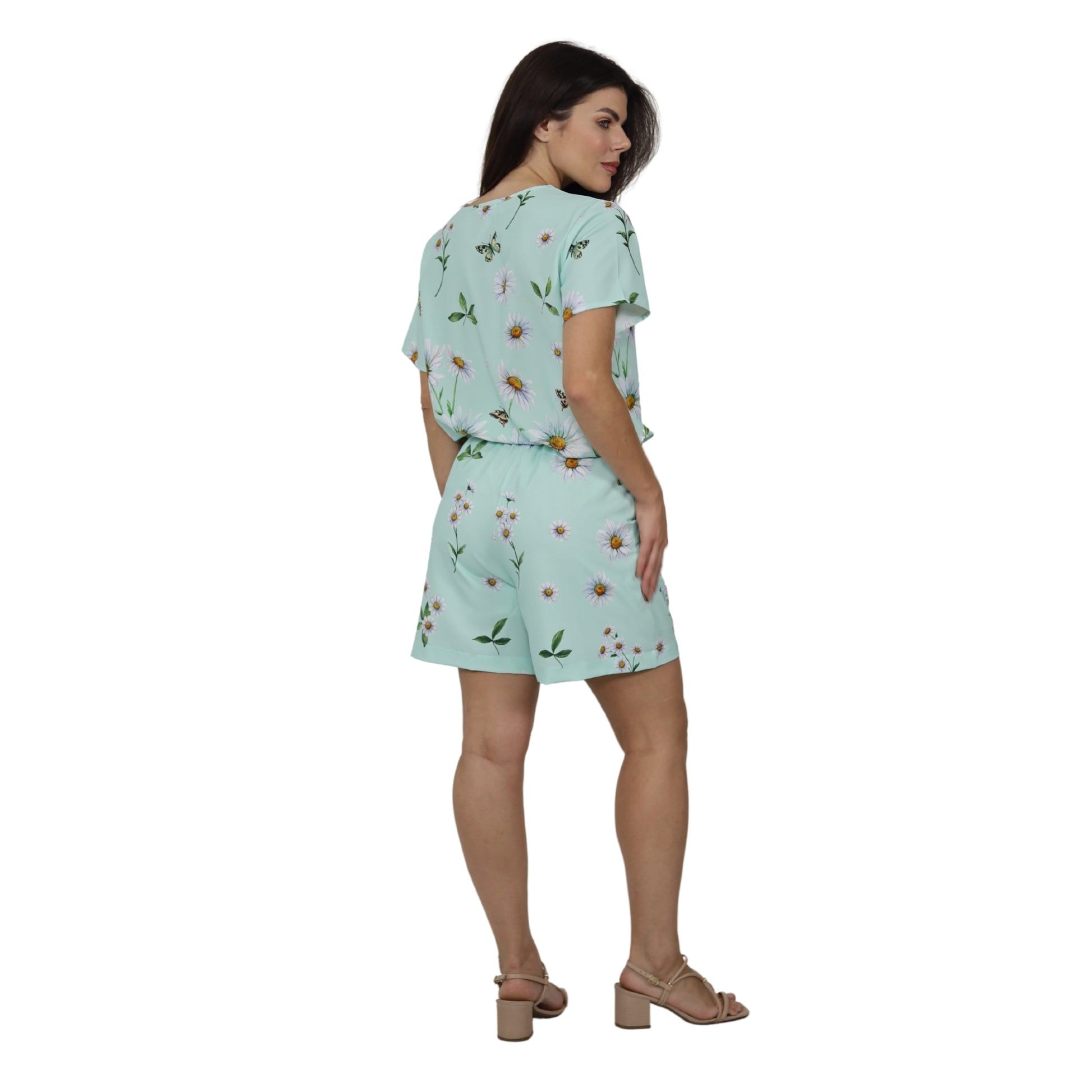 Conjunto de Blusa e Short BIXUGRILLO estampado Margarida Verde
