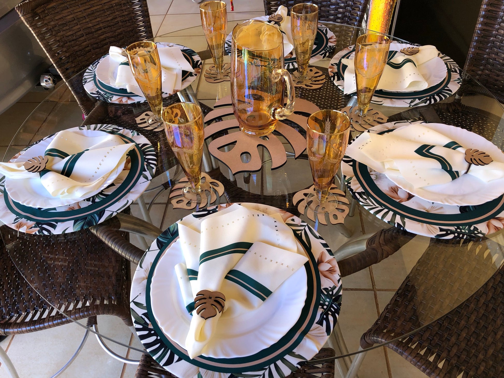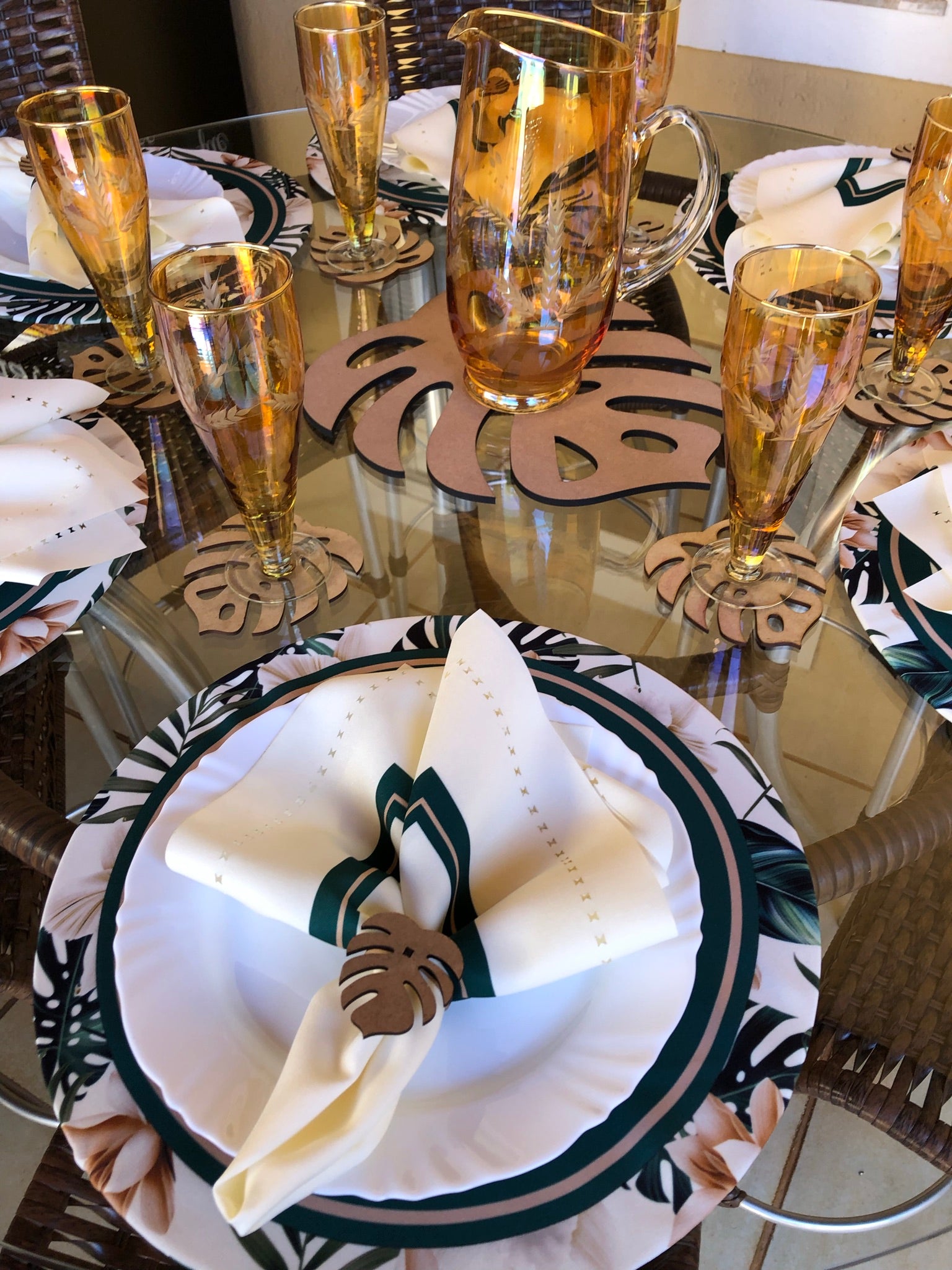 kit de 31 pçs p/ 6 lugares lugares mesa posta estampa Costela de Adão com corte a laser