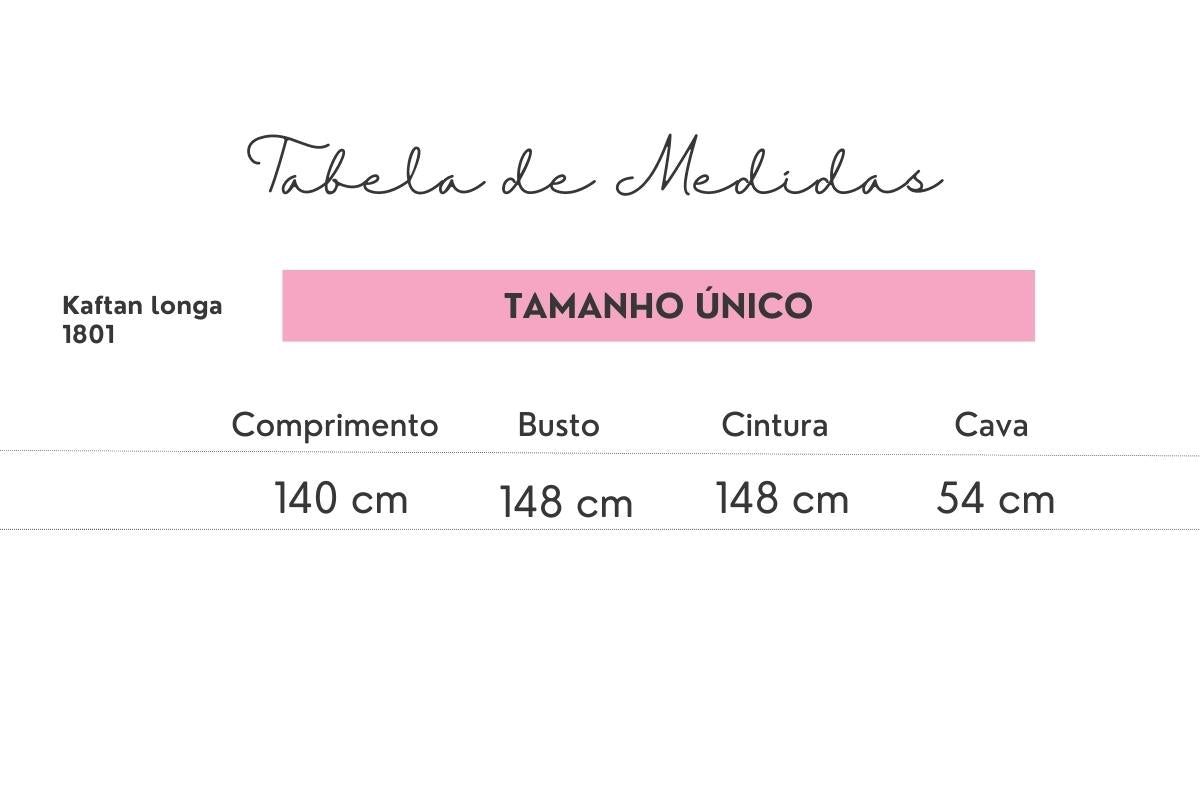 Nossas kaftans são tamanho único, caso você queira um tamanho especial, entre em contato pelo whats app que fazemos seu pedido personalizado.