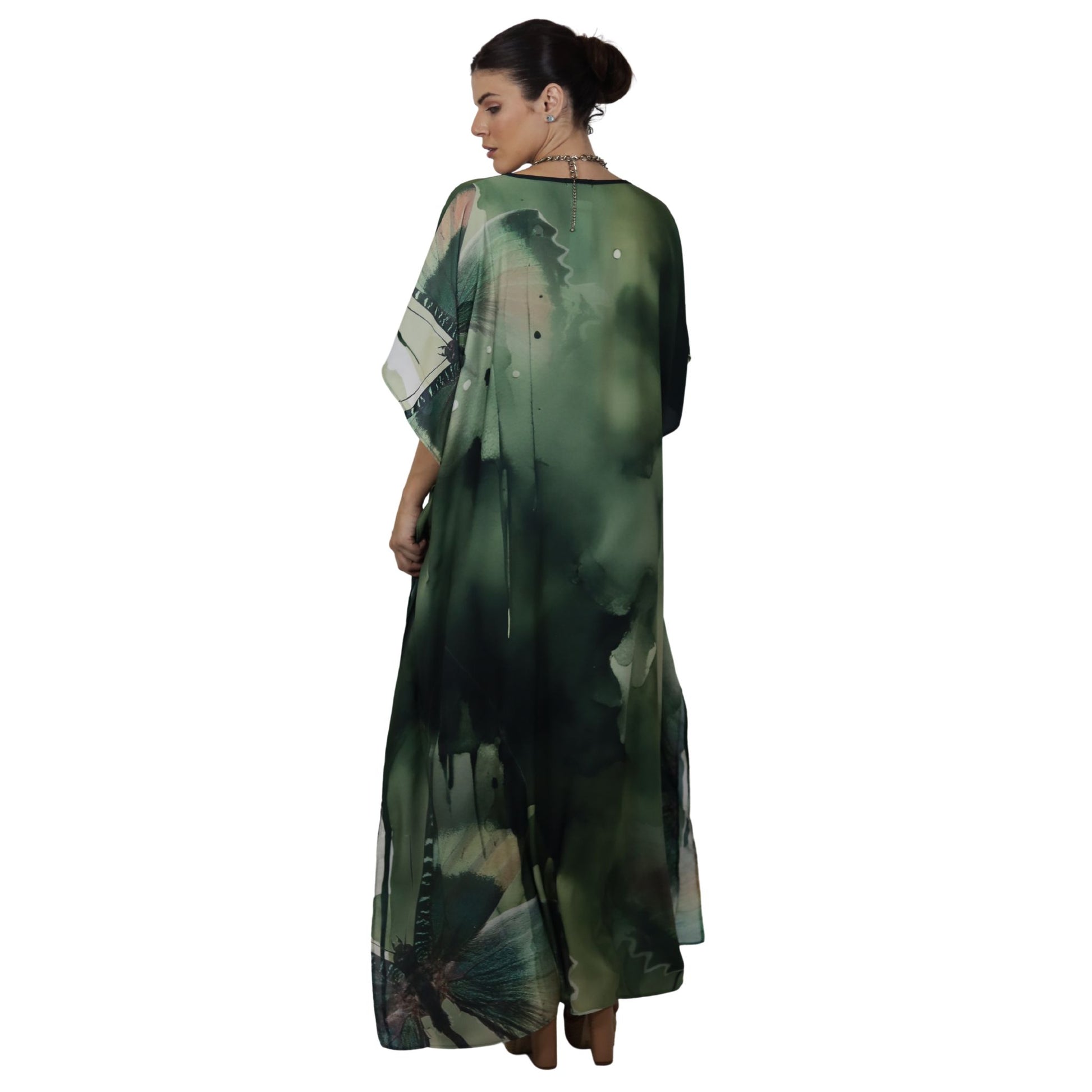 Kaftan Longa estampada Bixugrillo Borboleta Green