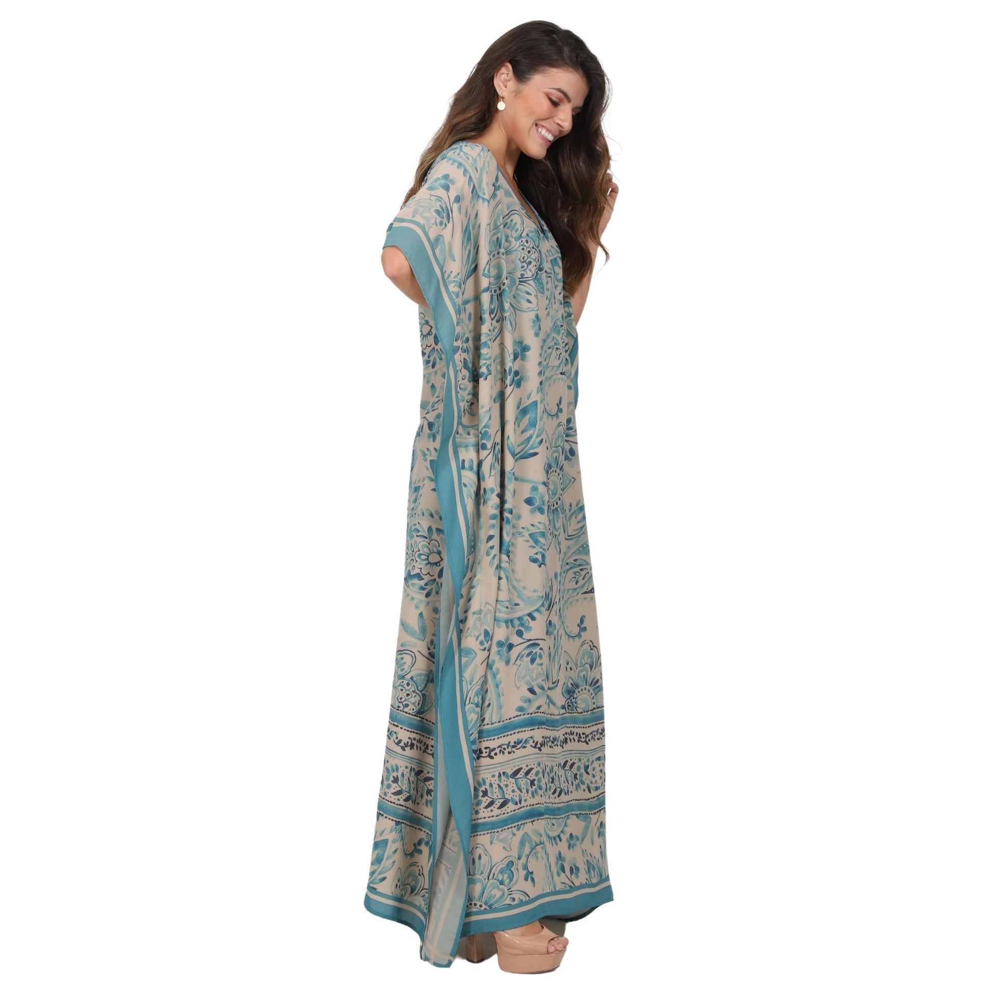 KAFTAN VESTIDO longa BIXUGRILLO estampada Azulejo