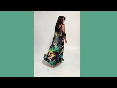 - KAFTAN VESTIDO Longo de alça, ombro aberto estampa Bixugrillo;