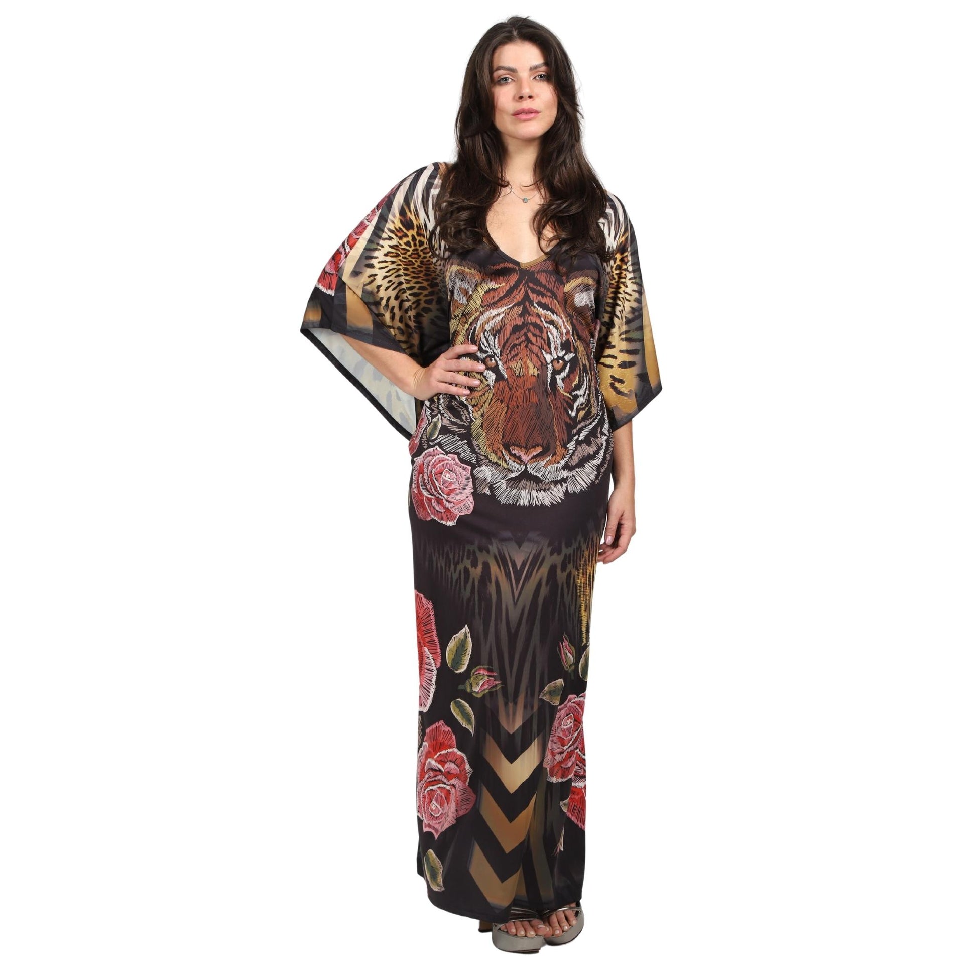Kaftan vestido longo malha Bixugrillo estampa Tigre