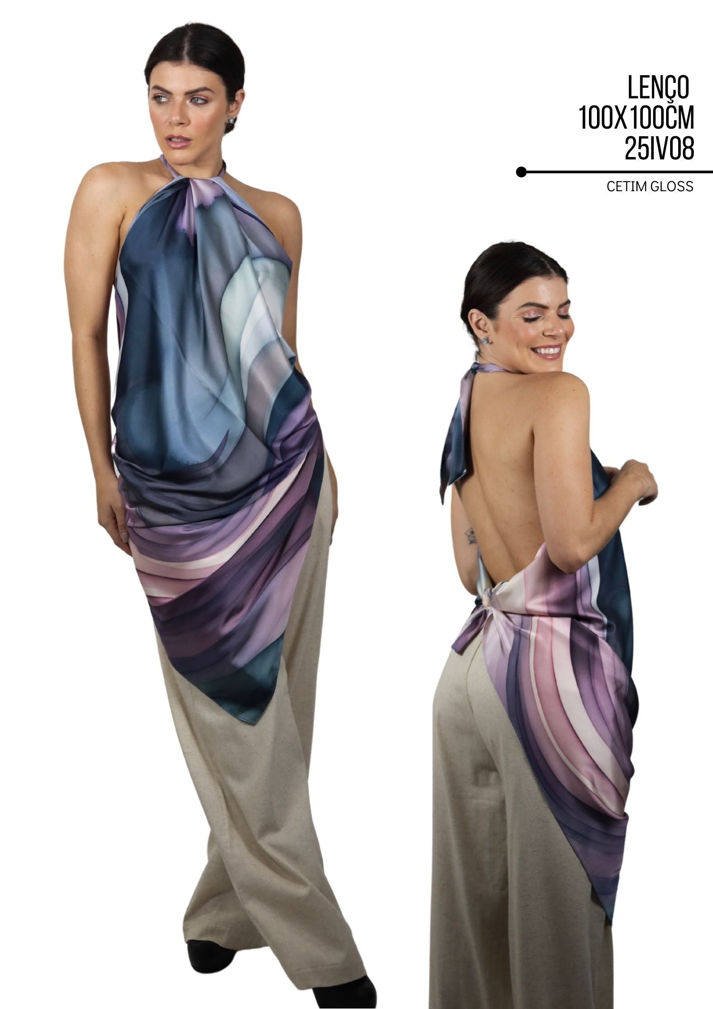 Com 90 x 90 cm, é o tamanho ideal para usarna cintura e o de 50 x 50 cm no pescoço, nos cabelos, ou amarrado à bolsa favorita.