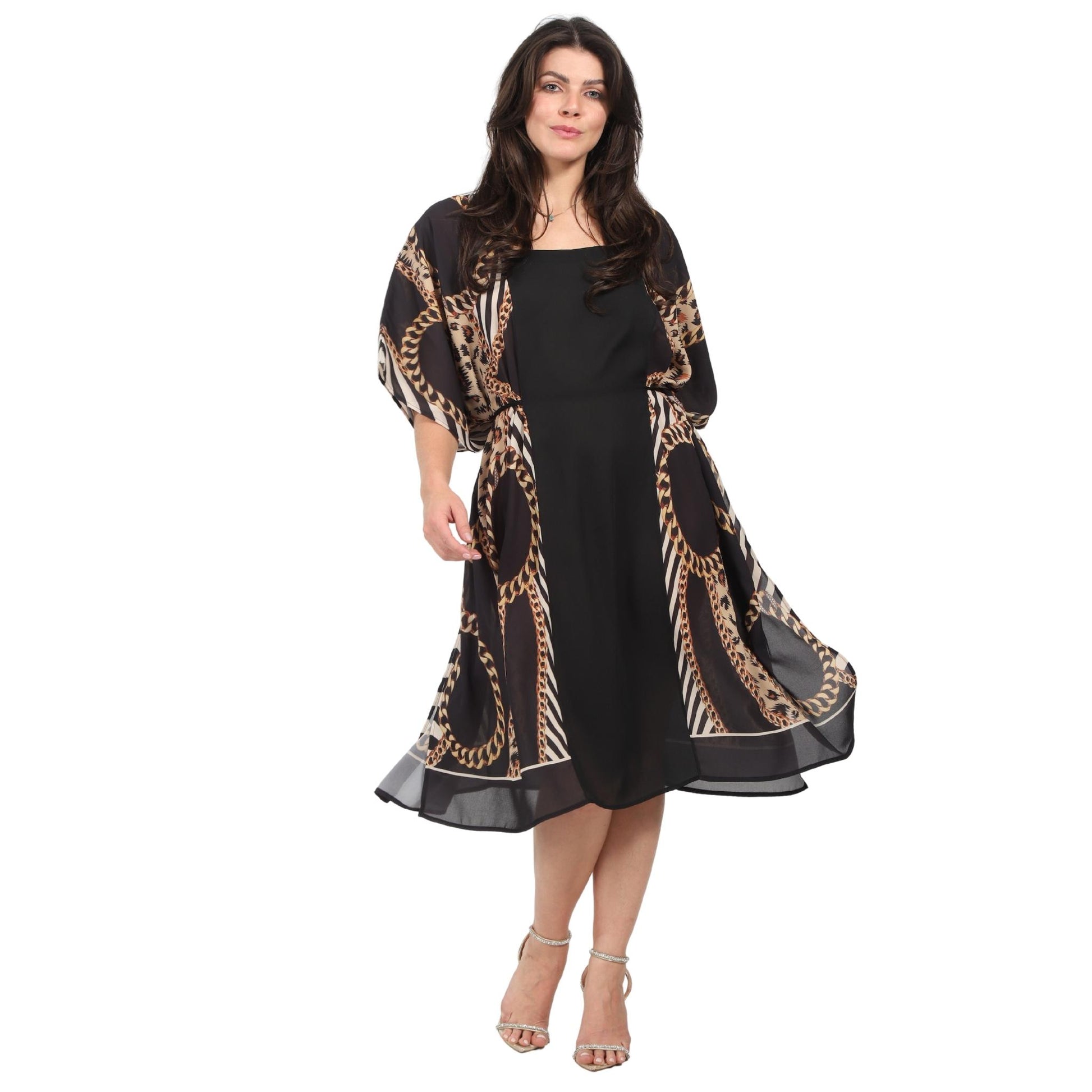 Vestido curto com recorte estampado laterais clássico